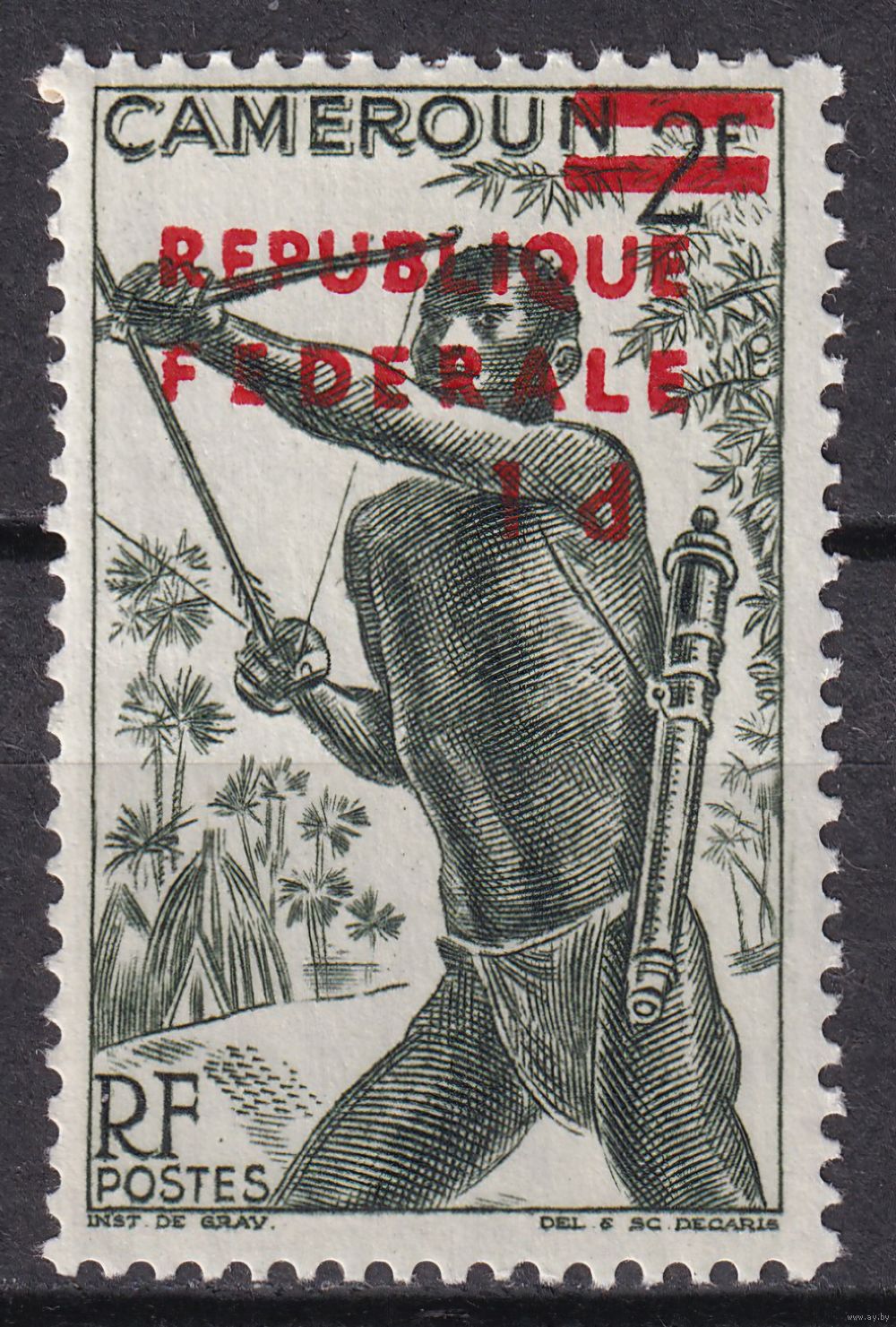 13.Af. Камерун. Надпечатка Федеративная Республика на марках Французского Камеруна. 1961 г. 1P. Mi.#333. ** - без наклейки или следов. (* - пожелтевший клей).