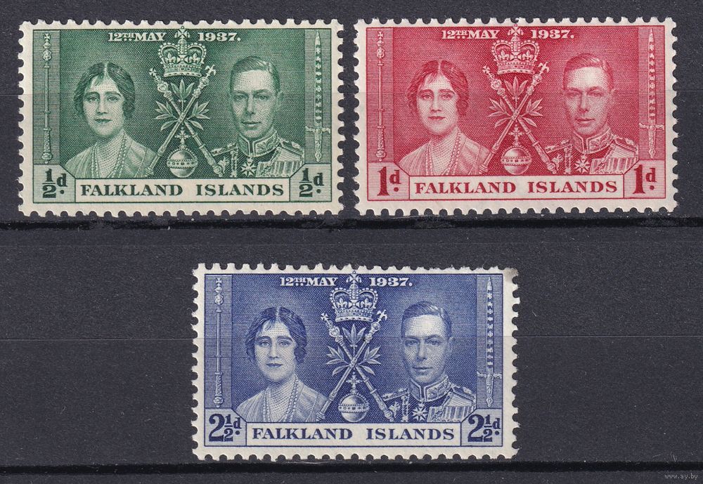 Фолклендские острова. Коронация Георга VI и Елизаветы. 1937 г. Полная серия. Mi.##75-77.