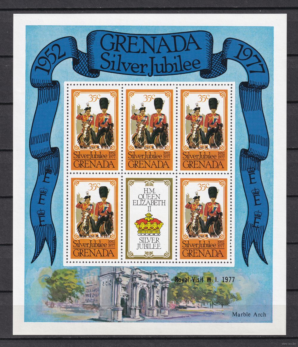 13. BrKS. Великобритания. Колонии. Гренада. Серебряный юбилей Елизаветы II. Надпечатка. Королевский визит 1977 г. 35C. Mi.#853C. Малый лист. MNH. (Формат - 17 см. Х 14,5 см.).