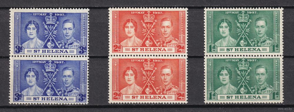 Остров Святой Елены. Коронация Георга VI и Елизаветы. 1937 г. Полная серия. Пары. Mi.##94-96. MNH.