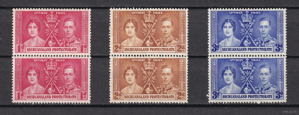Бечуаналенд. Коронация Георга VI и Елизаветы. 1937 г. Полная серия. Пары. Mi.##98-100. MNH.