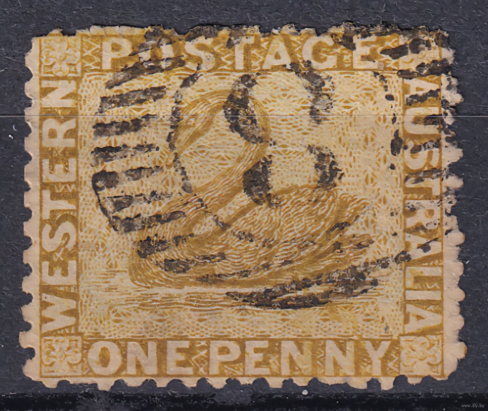 139.Aust. Великобритания. Австралийские штаты. Западная Австралия. Чёрный лебедь. Стандарт. 1864 г. 1p. Mi.#16Aa.