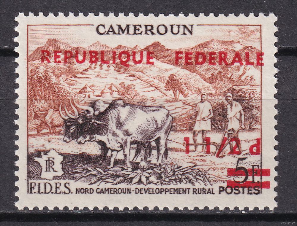 14.Af. Камерун. Надпечатка Федеративная Республика на марках Французского Камеруна. 1961 г. 1 1/2P. Mi.#334. ** - без наклейки или следов.