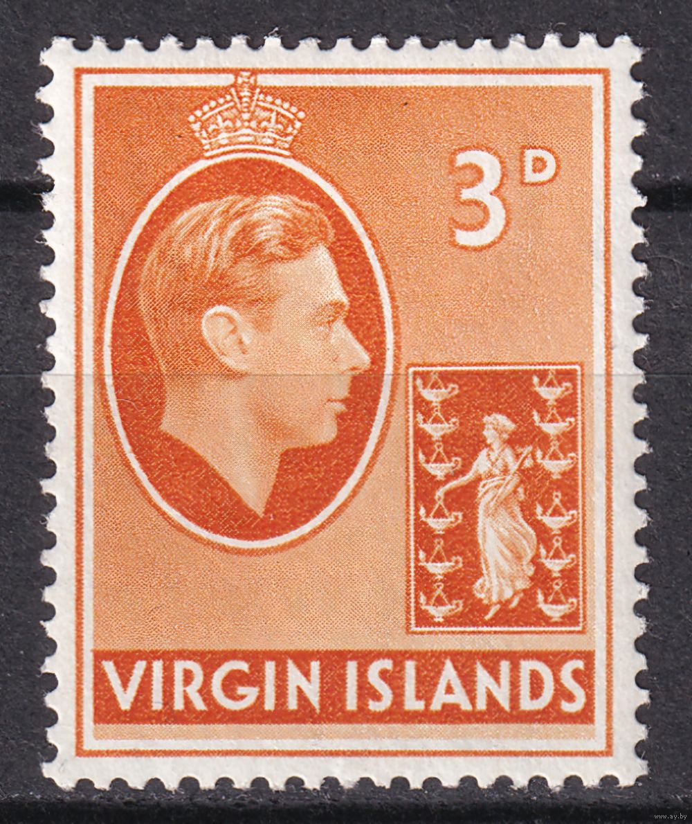 14.BrKCI. Великобритания. Колонии. Виргинские острова. Георг VI. 1938 г. 3P. Mi.#77.