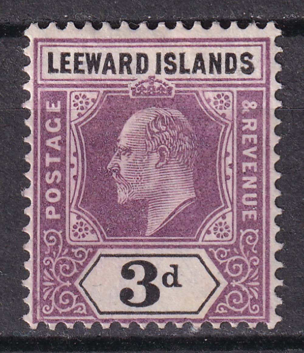 140.BrKCI. Великобритания. Колонии. Подветренные острова. Стандарт. Эдуард VII. 1902 г. 3P. Mi.#24(* - без клея).