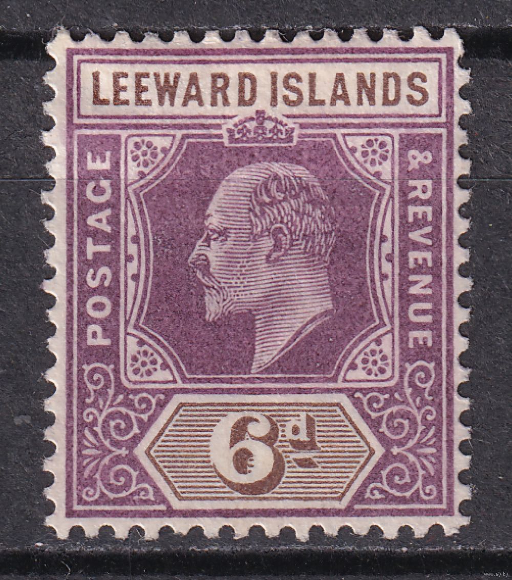 141.BrKCI. Великобритания. Колонии. Подветренные острова. Стандарт. Эдуард VII. 1902 г. 6P. Mi.#25(* - без клея).