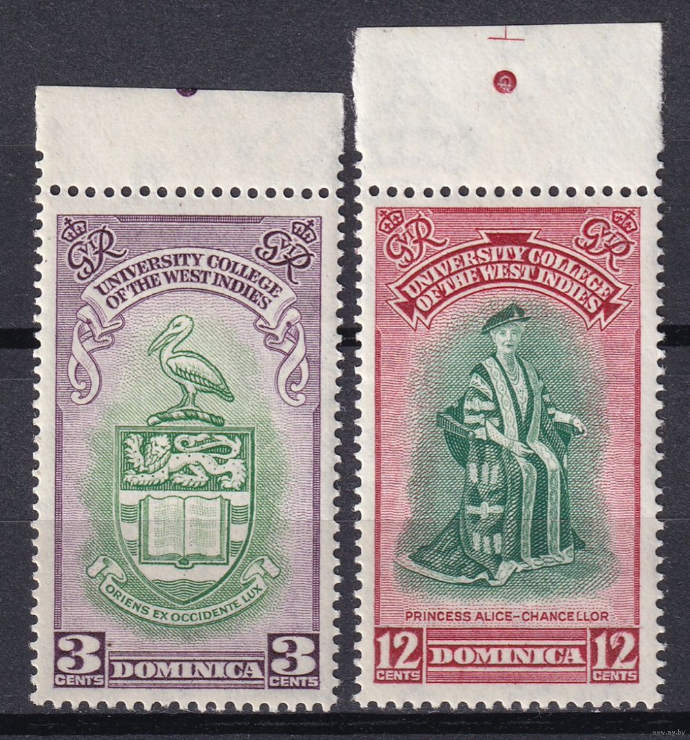 141.BrKS. Великобритания. Колонии. Доминика. Открытие Ямайского университета для британских колоний в Вест - Индии. 1951 г. Полная серия. MNH. Mi.##116-117.