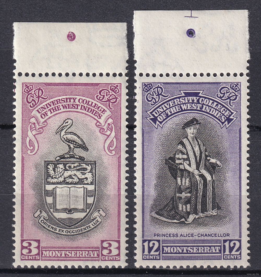 143.BrKS. Великобритания. Колонии. Монтсеррат. Открытие Ямайского университета для британских колоний в Вест - Индии. 1951 г. Полная серия. MNH. Mi.##113-114.