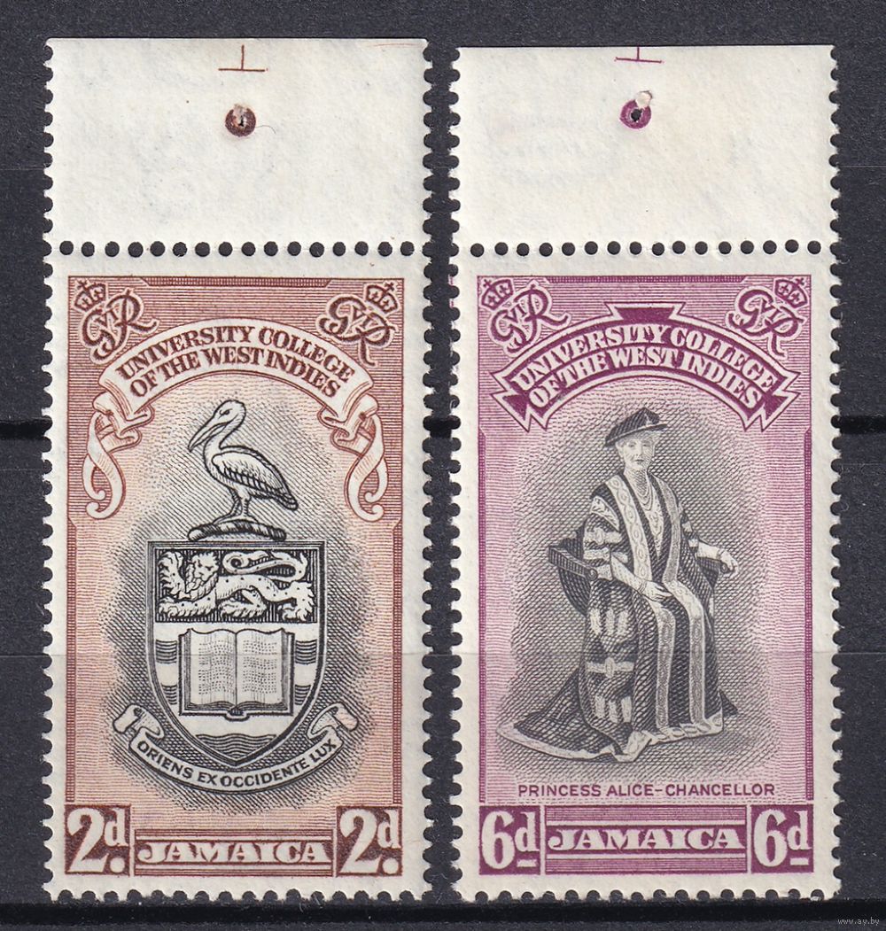 144.BrKS. Великобритания. Колонии. Ямайка. Открытие Ямайского университета для британских колоний в Вест - Индии. 1951 г. Полная серия. MNH. Mi.##151-152.