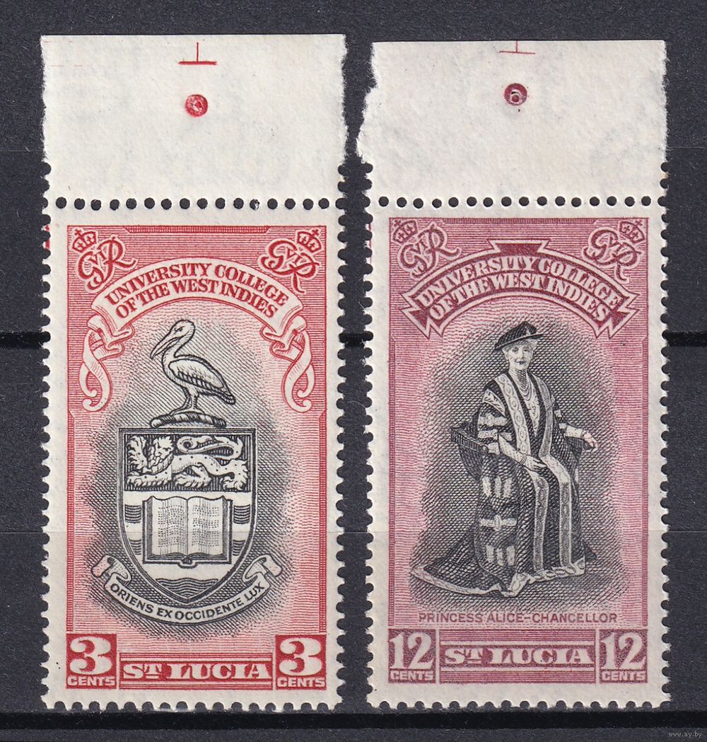 147.BrKS. Великобритания. Колонии. Сент-Люсия. Открытие Ямайского университета для британских колоний в Вест - Индии. 1951 г. Полная серия. MNH. Mi.##138-139.