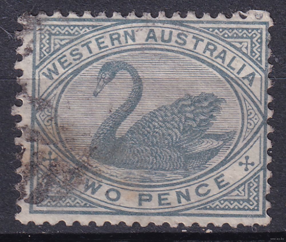 148а.Aust. Великобритания. Австралийские штаты. Западная Австралия. Чёрный лебедь. Стандарт. 1890/93 гг. 2p. Mi.#35.