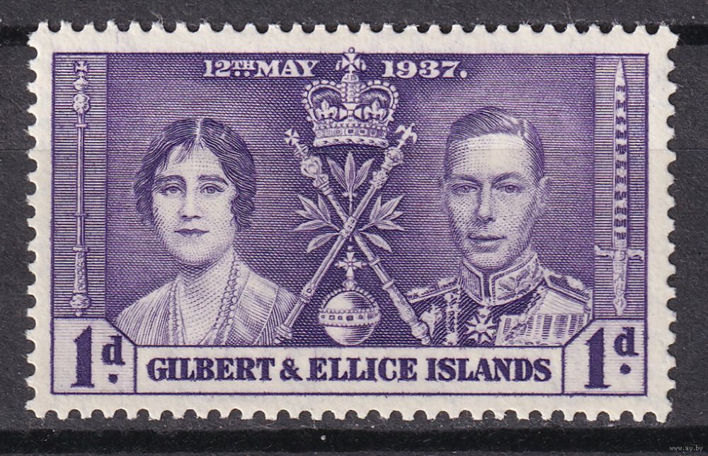 Острова Гилберта и Эллис. Коронация Георга VI и Елизаветы. 1937 г. 1d. Mi.#35.
