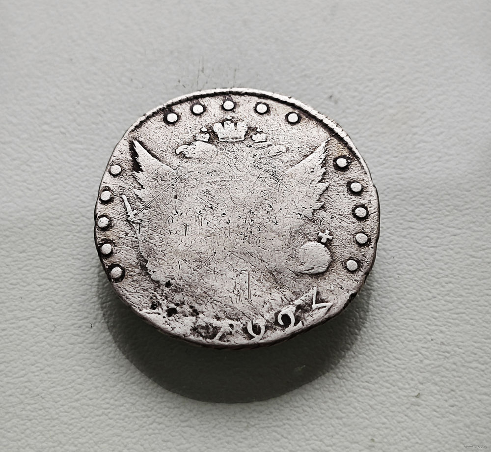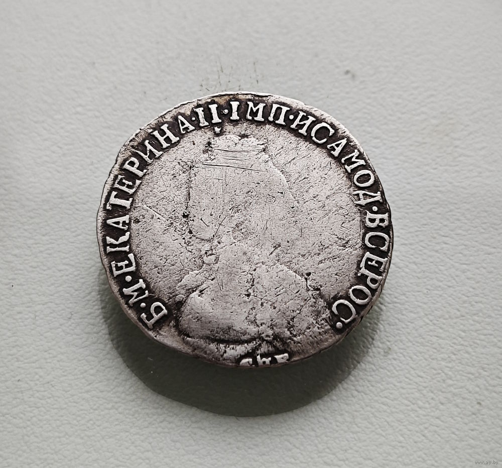 Перед нами монета 15 копеек, выпущенная в 1792 году Санкт-Петербургским монетным двором (СПБ), в 1792 году введена в обращение.
