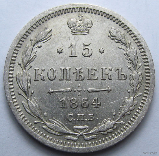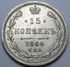 15 КОПЕЕК 1864 СПБ-НФ ШТЕМПЕЛЬНЫЙ БЛЕСК, КЛАДОВЫЙ СОХРАН