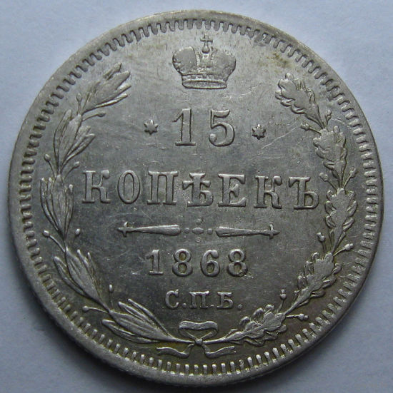 15 КОПЕЕК 1868 СПБ-НI БЛЕСК, КЛАДОВЫЙ СОХРАН