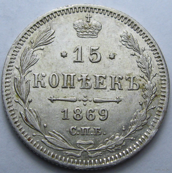 15 КОПЕЕК 1869 СПБ-НI БЛЕСК, КЛАДОВЫЙ СОХРАН