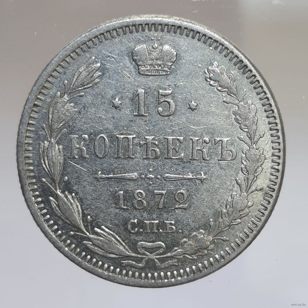 15 копеек 1872 HI зеркальное поле. более 30 лотов с рубля