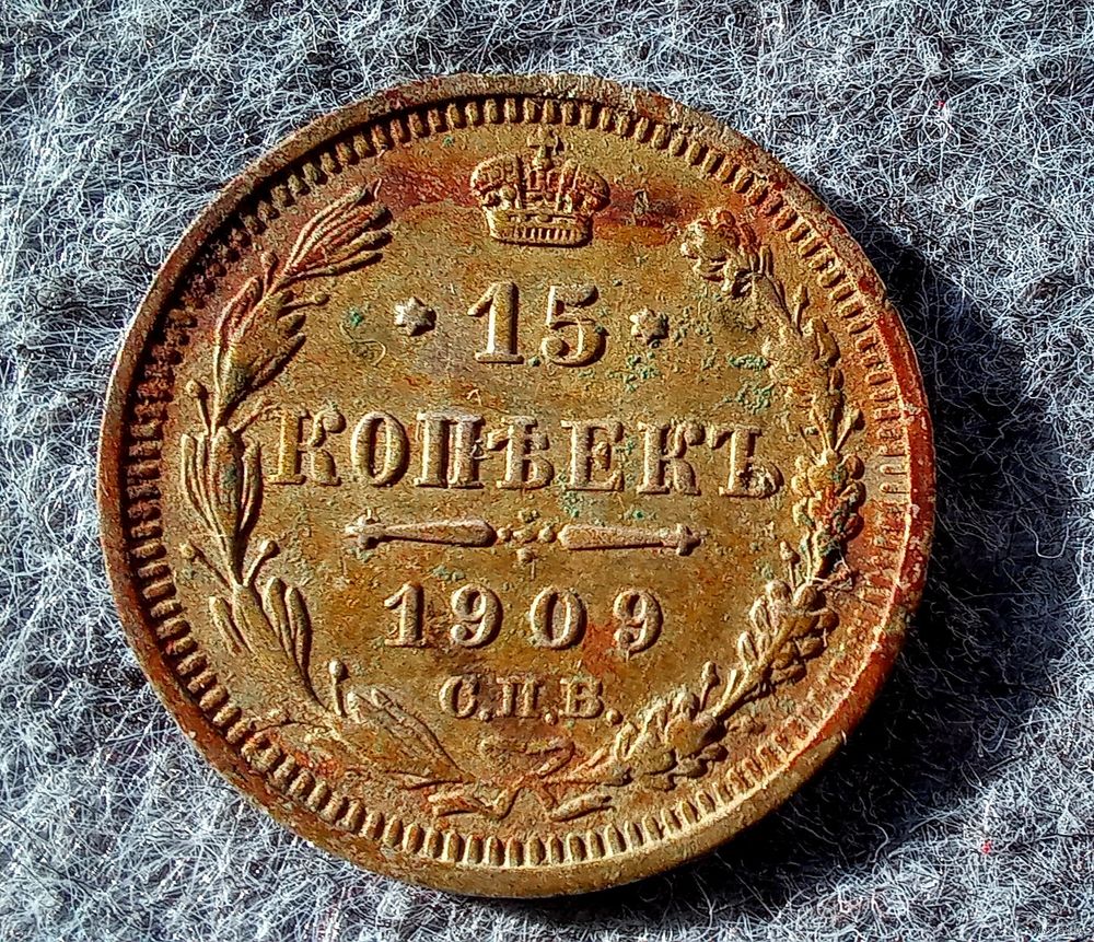 15 копеек 1909г. Красивая монета, в оригинальной патине,не чищена.