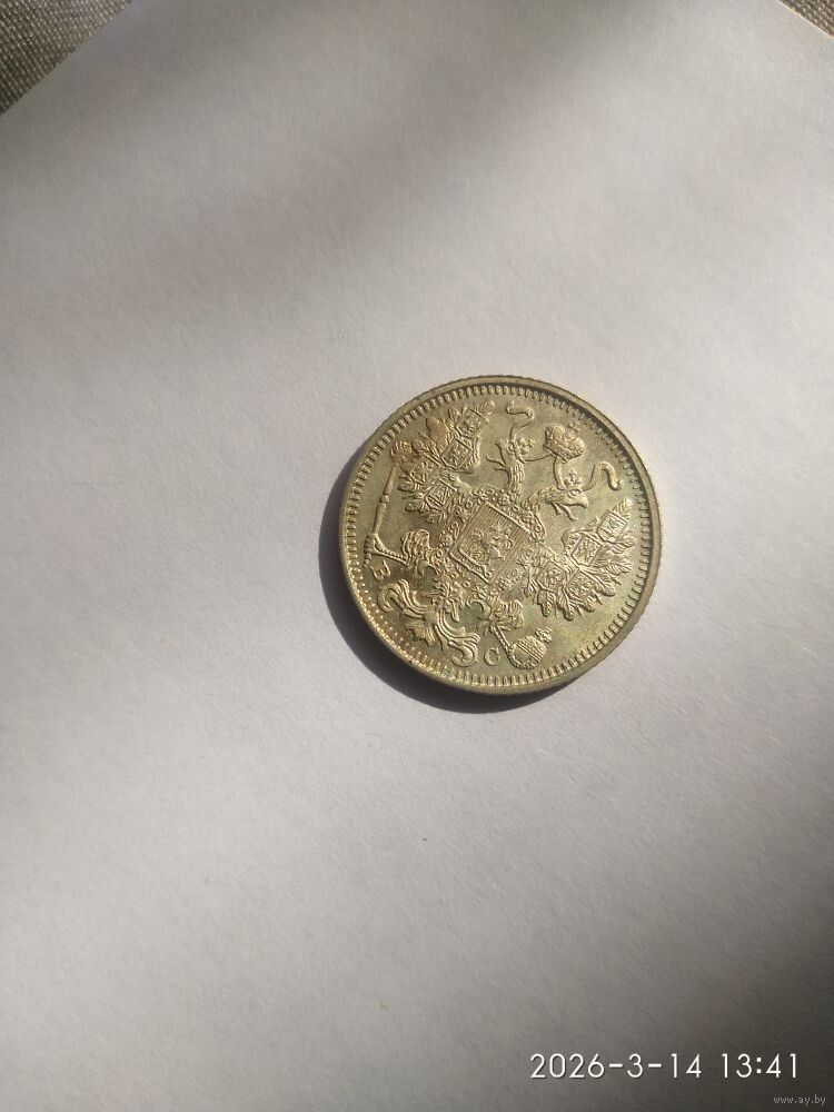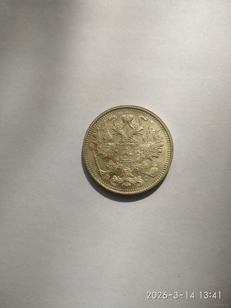 Аверс: в середине Малый Государственный Герб Российской империи, внизу вдоль края монеты слева и справа от хвоста орла инициалы минцмейстера «ВС» (Виктор Смирнов).