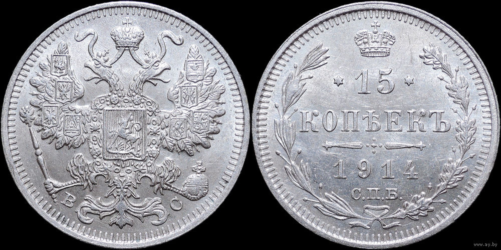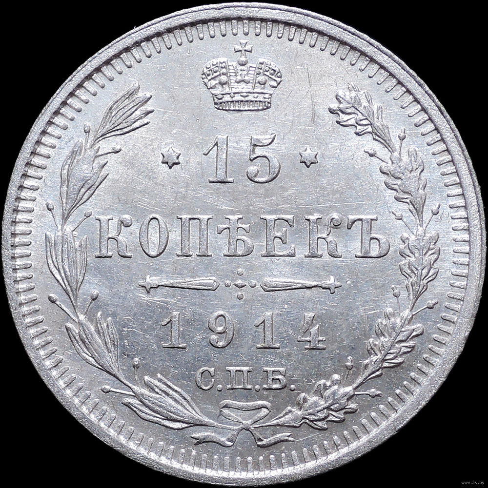15 копеек 1914, aUNC, Штемпельный блеск! С 1 Рубля! Смотрите другие лоты!