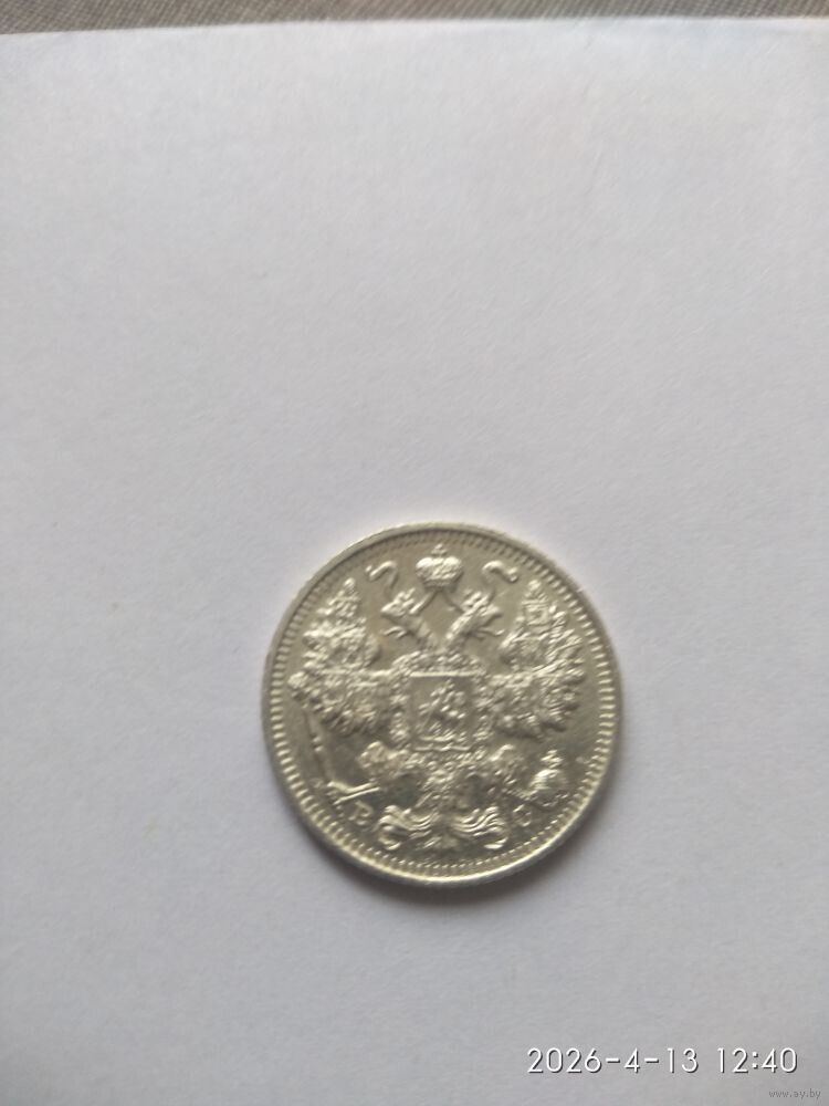 В правой лапе орла — скипетр, а в левой — держава. Под правой лапой – буква «В», под левой – буква «С». Инициалы минцмейстера Виктора Смирнова. Буртик украшен зубчиками.Гурт