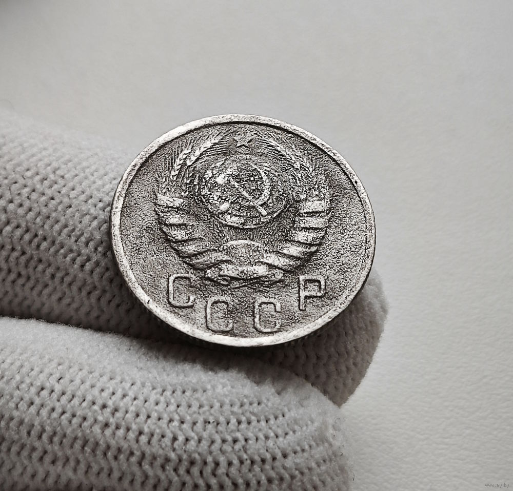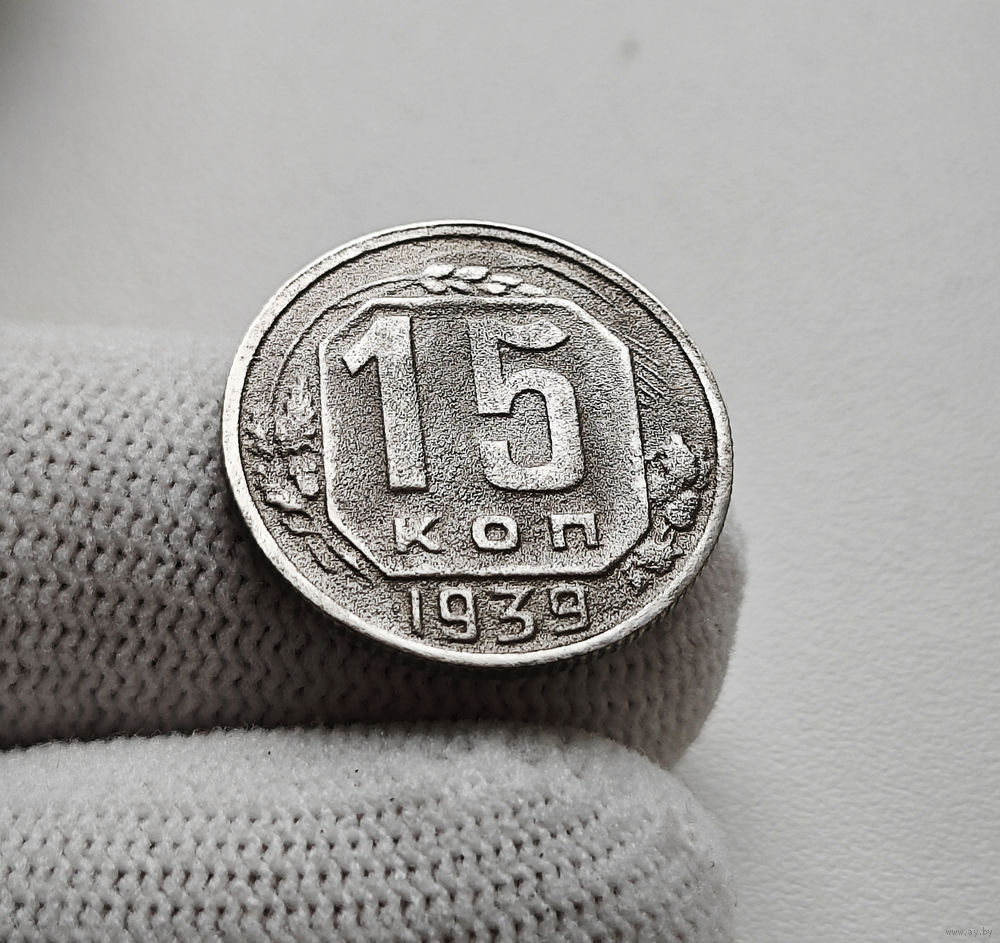 Перед нами монета 15 копеек, выпущенная в 1939 году, в 1939 году введена в обращение.