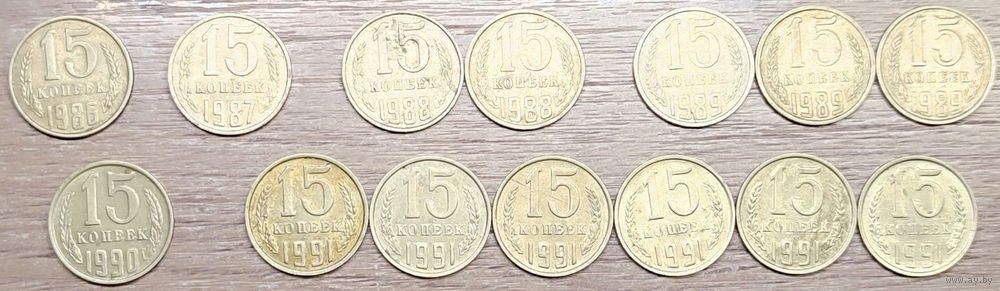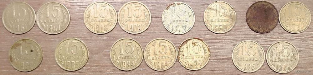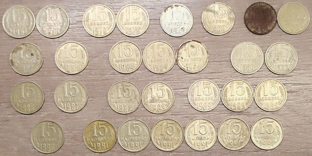 Лот монет номиналом 15 копеек 1961-1991 СССР общим количеством - 29шт: