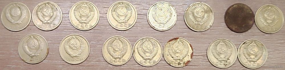 - Монета номиналом 15 копеек 1991 М СССР в количестве - 6шт (все немагнитные)