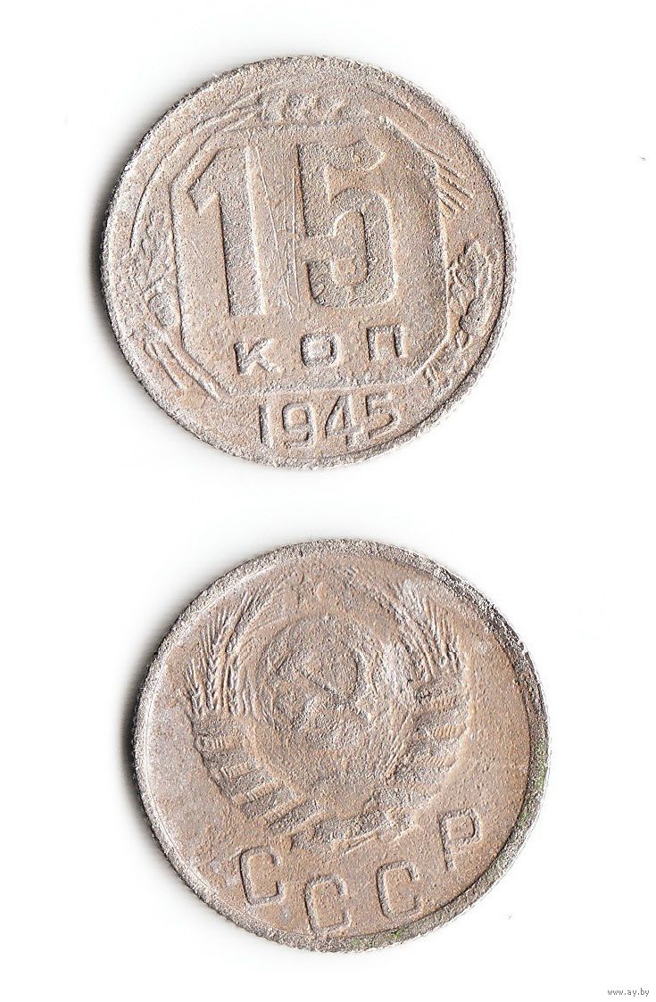 15 копеек СССР 1945 года, состояние отображено на скане.