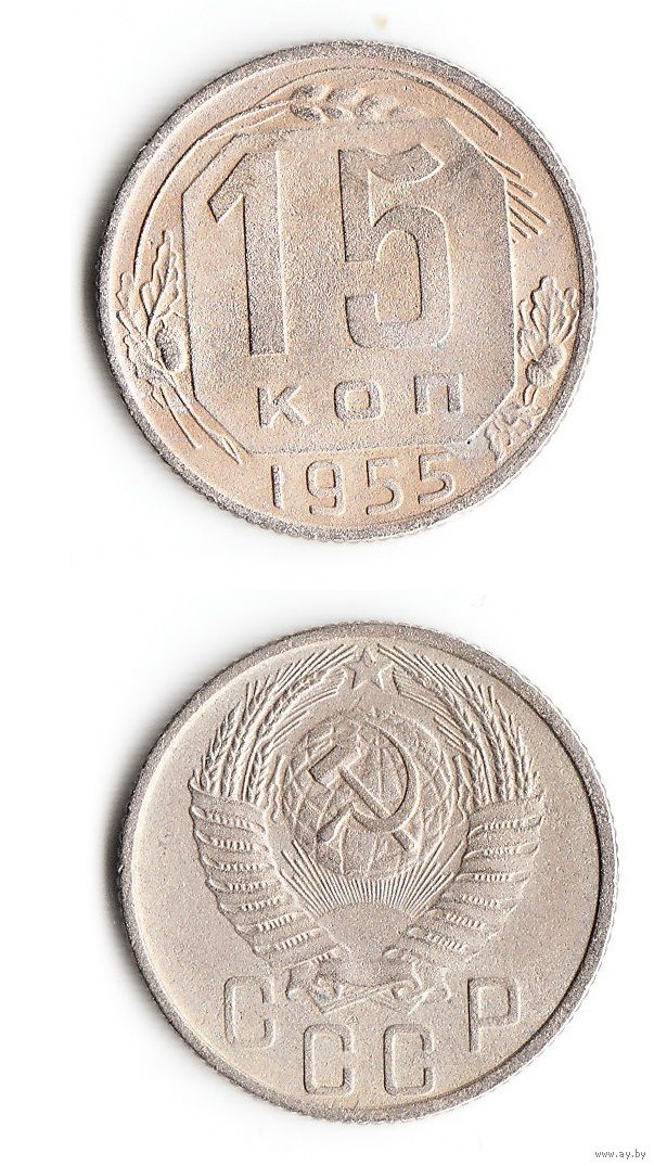 15 копеек СССР 1955 года, состояние отображено на скане.