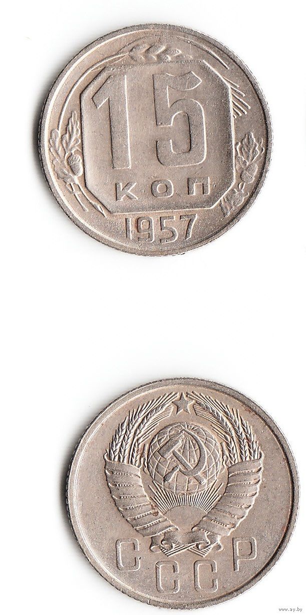15 копеек СССР 1957 года, состояние отображено на скане.