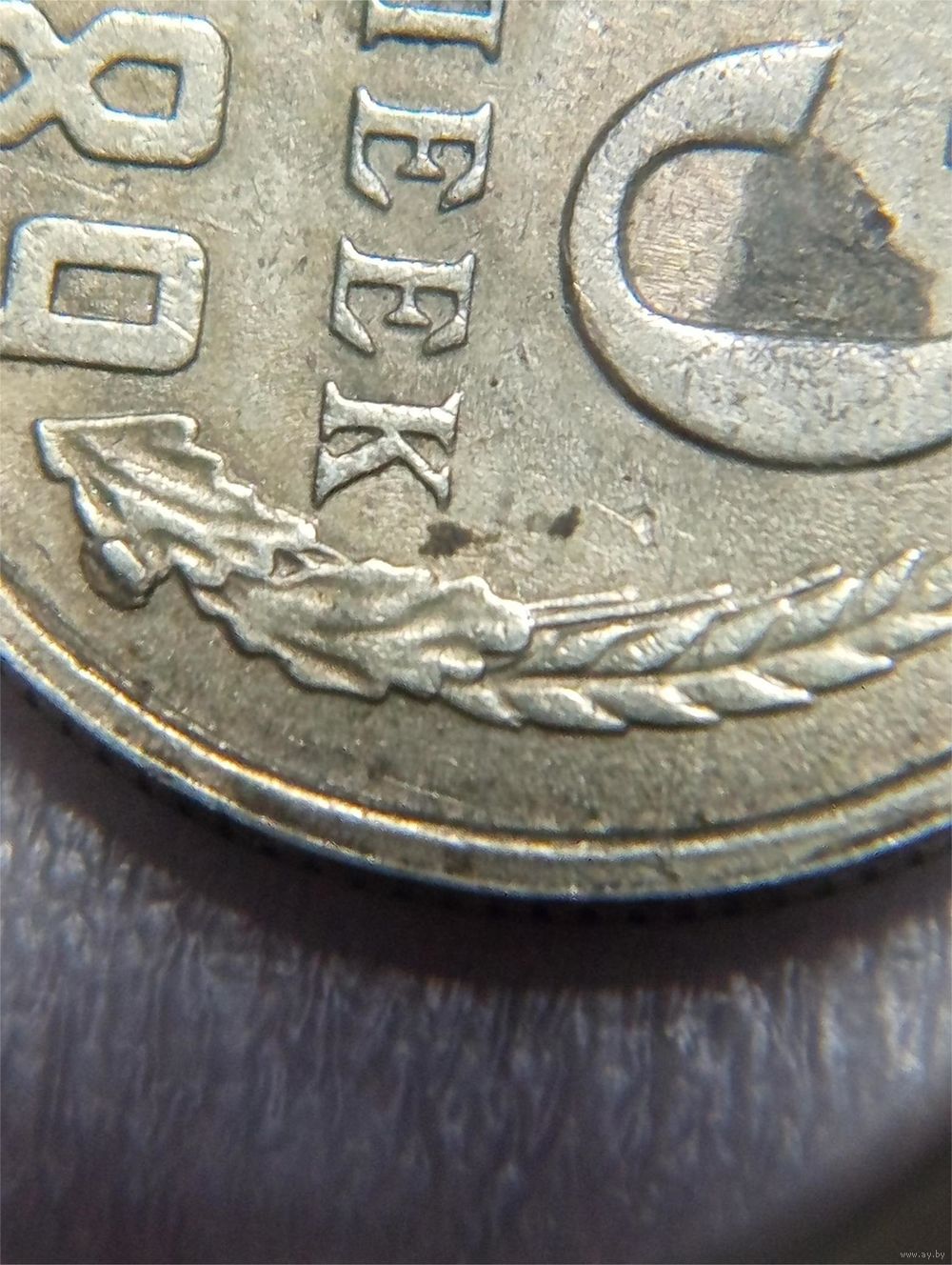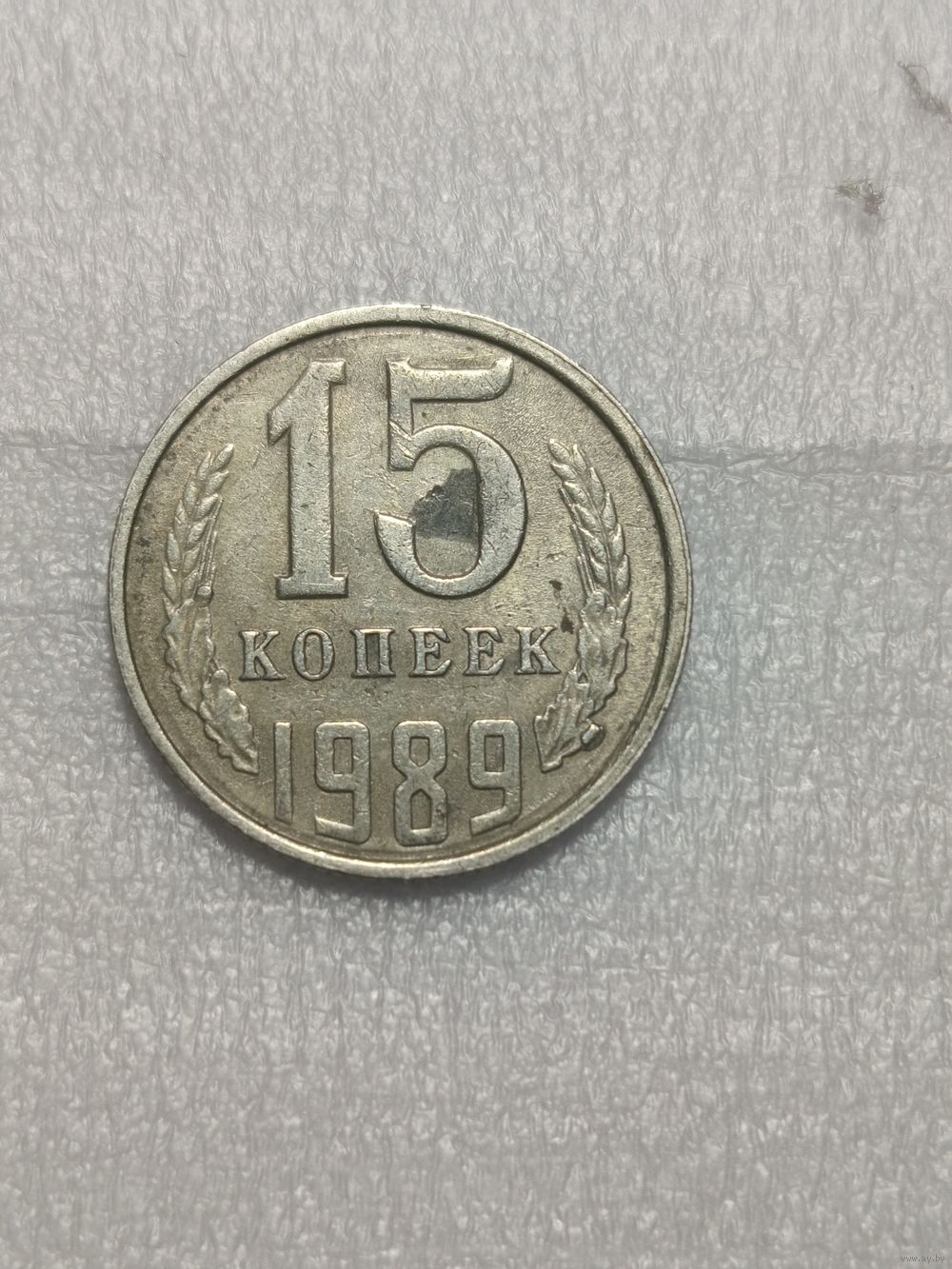 15 копеек СССР 1989 выкрошка или запрессовка между листьями венками