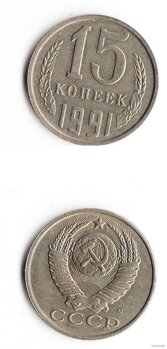 15 копеек СССР 1991 года(Л), состояние отображено на скане.