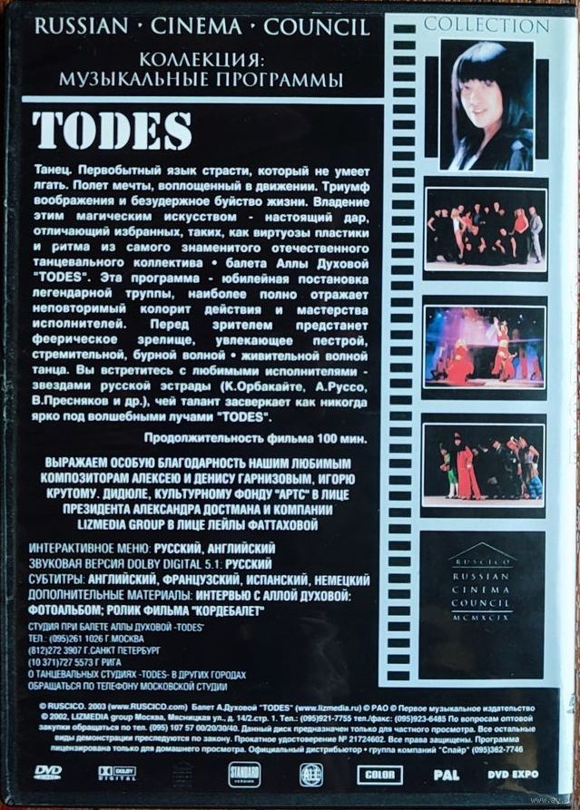 Танец, первобытный язык страсти, который не умеет лгать. Полет мечты, воплощенный в движении. Триумф воображения и безудержное буйство жизни. Владение этим магическим искусством - настоящий дар, отличающий избранных, таких, как виртуозы пластики и ритма из самого знаменитого отечественного танцевального коллектива - балета Аллы Духовой "TODES". Эта программа - юбилейная постановка легендарной труппы, наиболее полно отражает неповторимый колорит действия и мастерства исполнителей. Перед зрителем предстанет феерическое зрелище, увлекающее пестрой, стремительной, бурной волной - живительной волной танца. Вы встретитесь с любимыми исполнителями - звездами русской эстрады (К. Орбакайте, А. Руссо, В. Пресняков и др.), чей талант засверкает как никогда ярко под волшебными лучами "TODES".