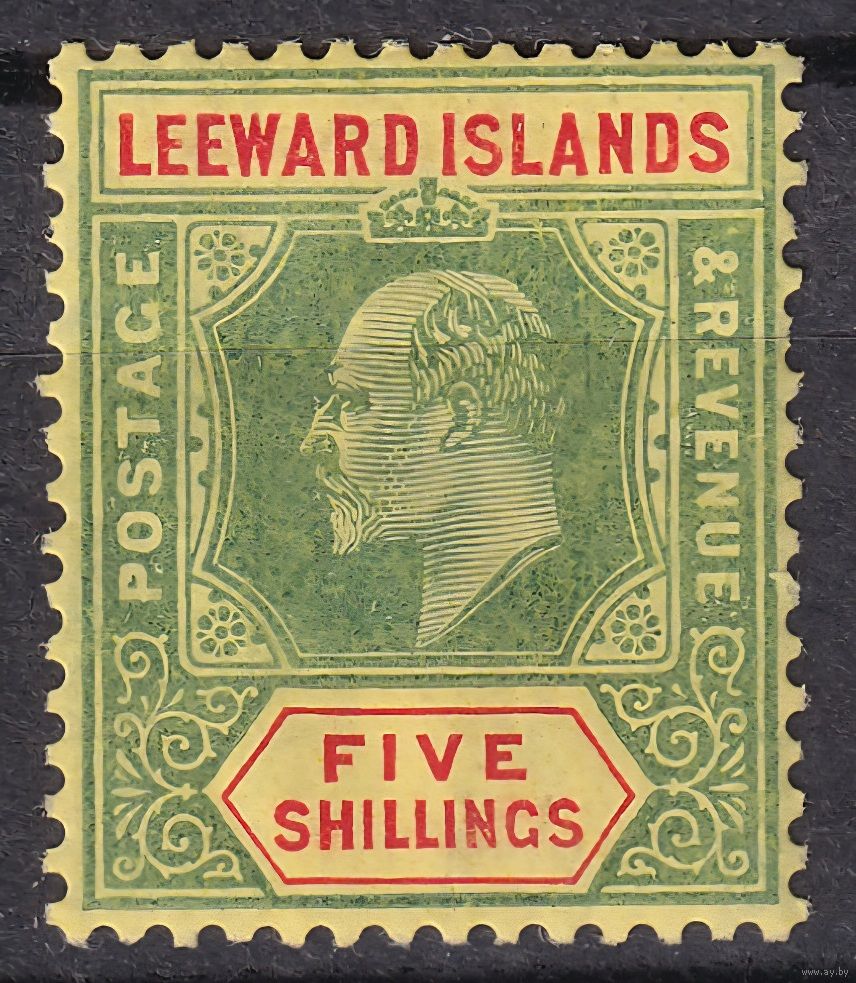 151.BrKCI. Великобритания. Колонии. Подветренные острова. Стандарт. Эдуард VII. 5Sh. 1907 г. Mi.#45.