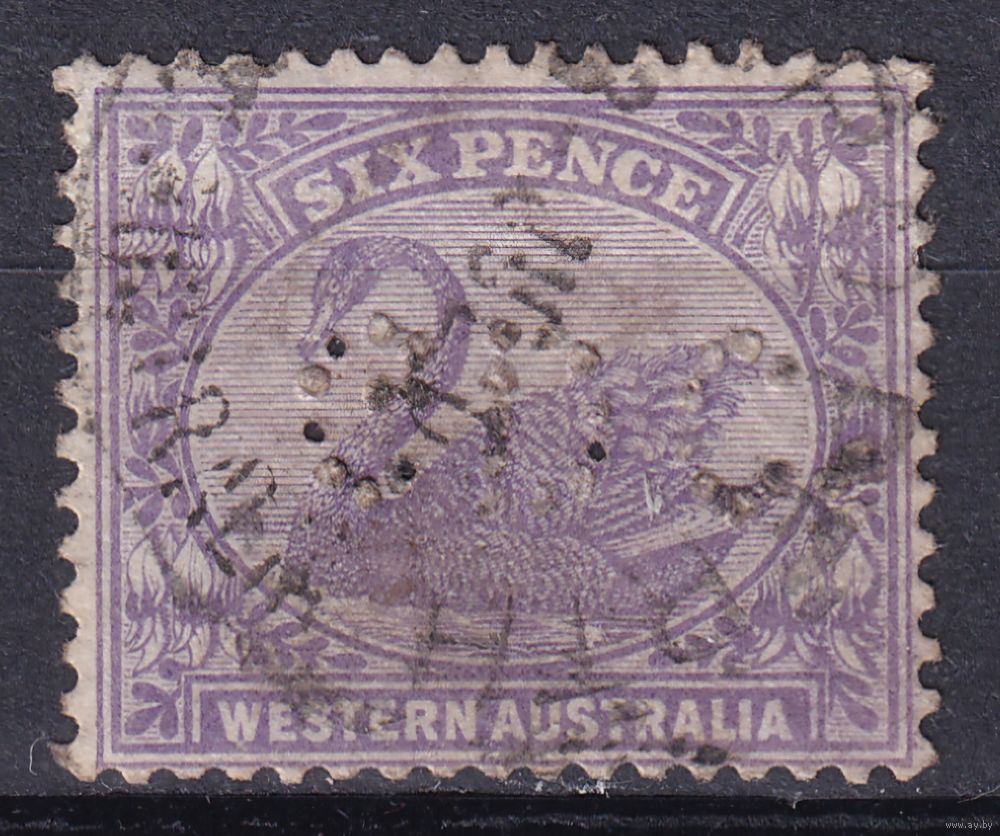 157.Aust. Великобритания. Австралийские штаты. Западная Австралия. Чёрный лебедь. Стандарт. 1906 г. 6p. Mi.#47. Перфин.