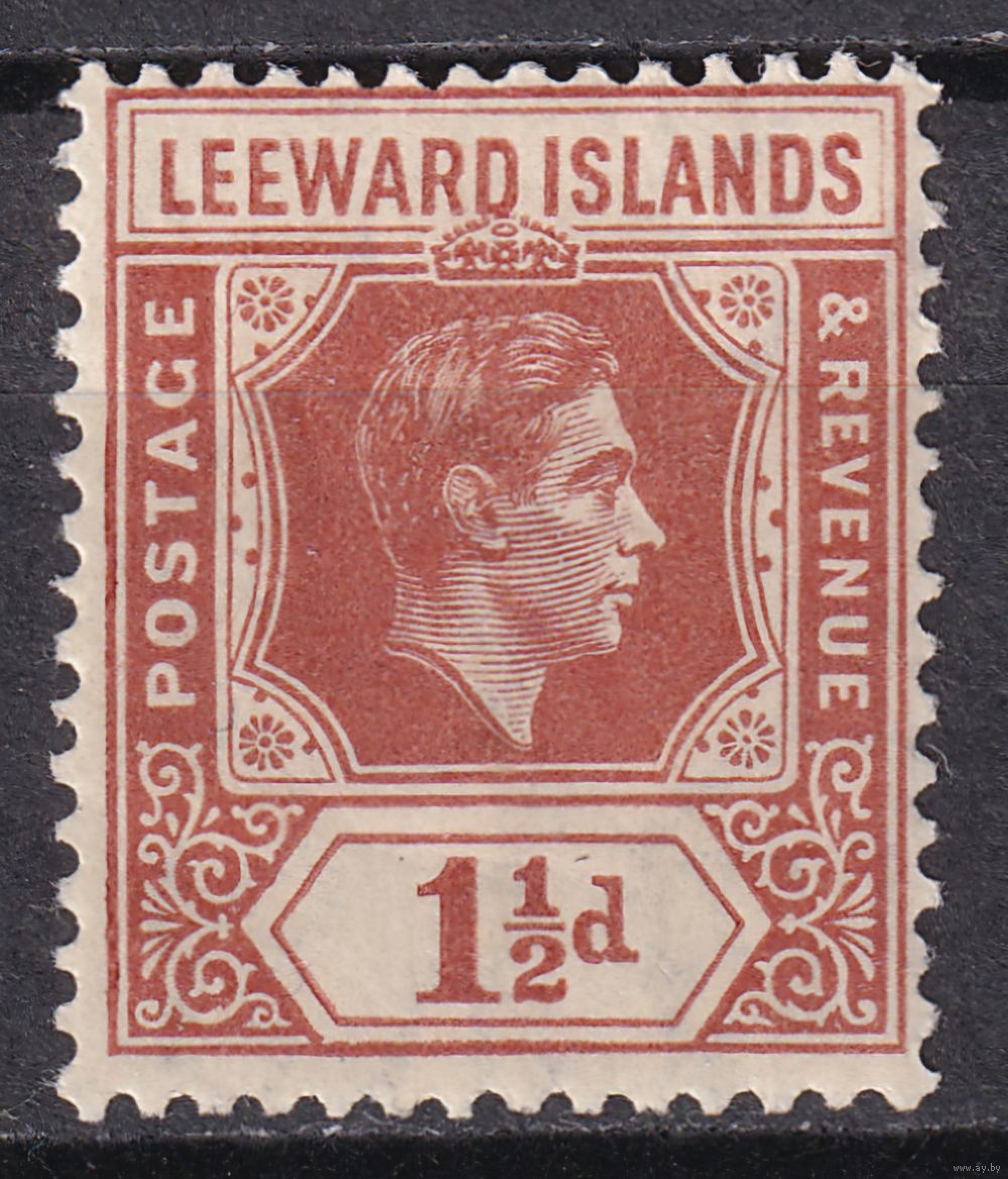 157.BrKCI. Великобритания. Колонии. Подветренные острова. Стандарт. Георг VI. 1938 г. 1 1/2P. Mi.#92(* - пожелтевший клей).