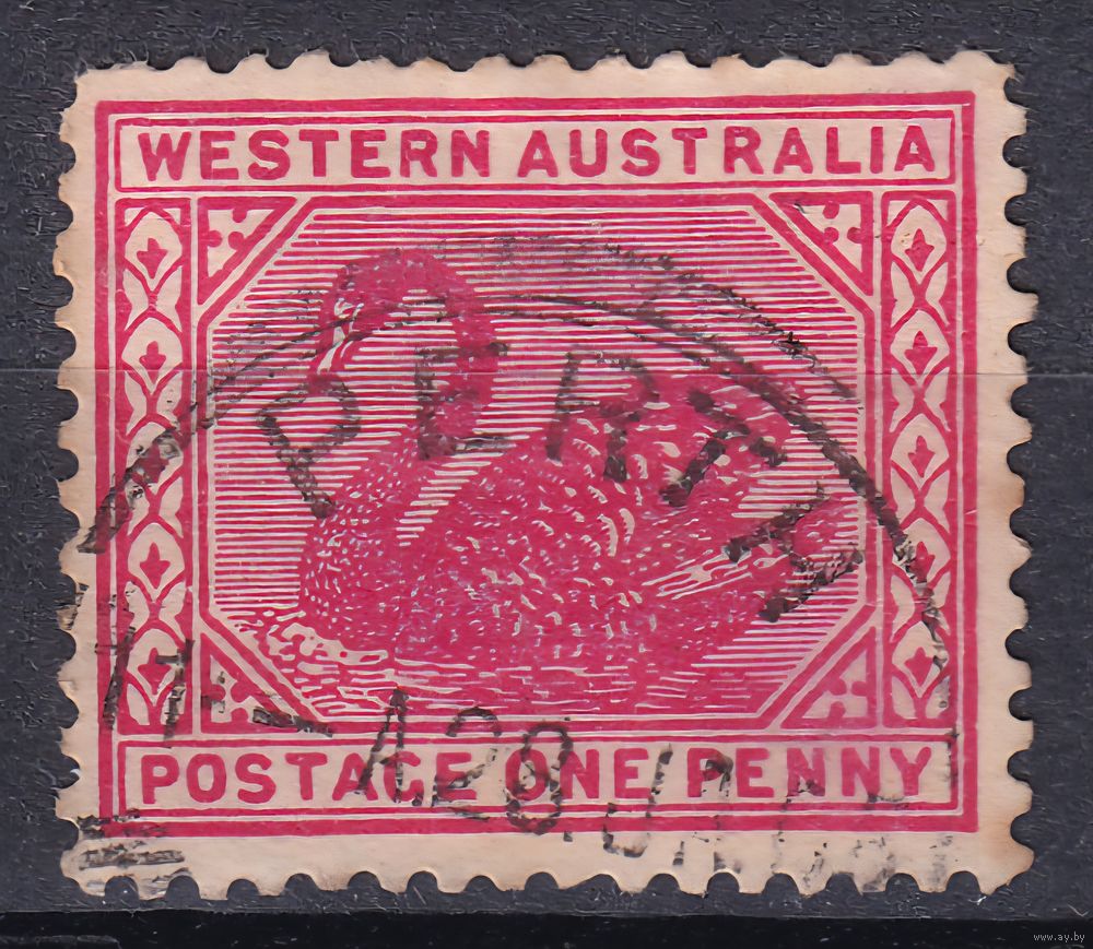 158.Aust. Великобритания. Австралийские штаты. Западная Австралия. Чёрный лебедь. Стандарт. 1902 г. 1p. Mi.#49A.