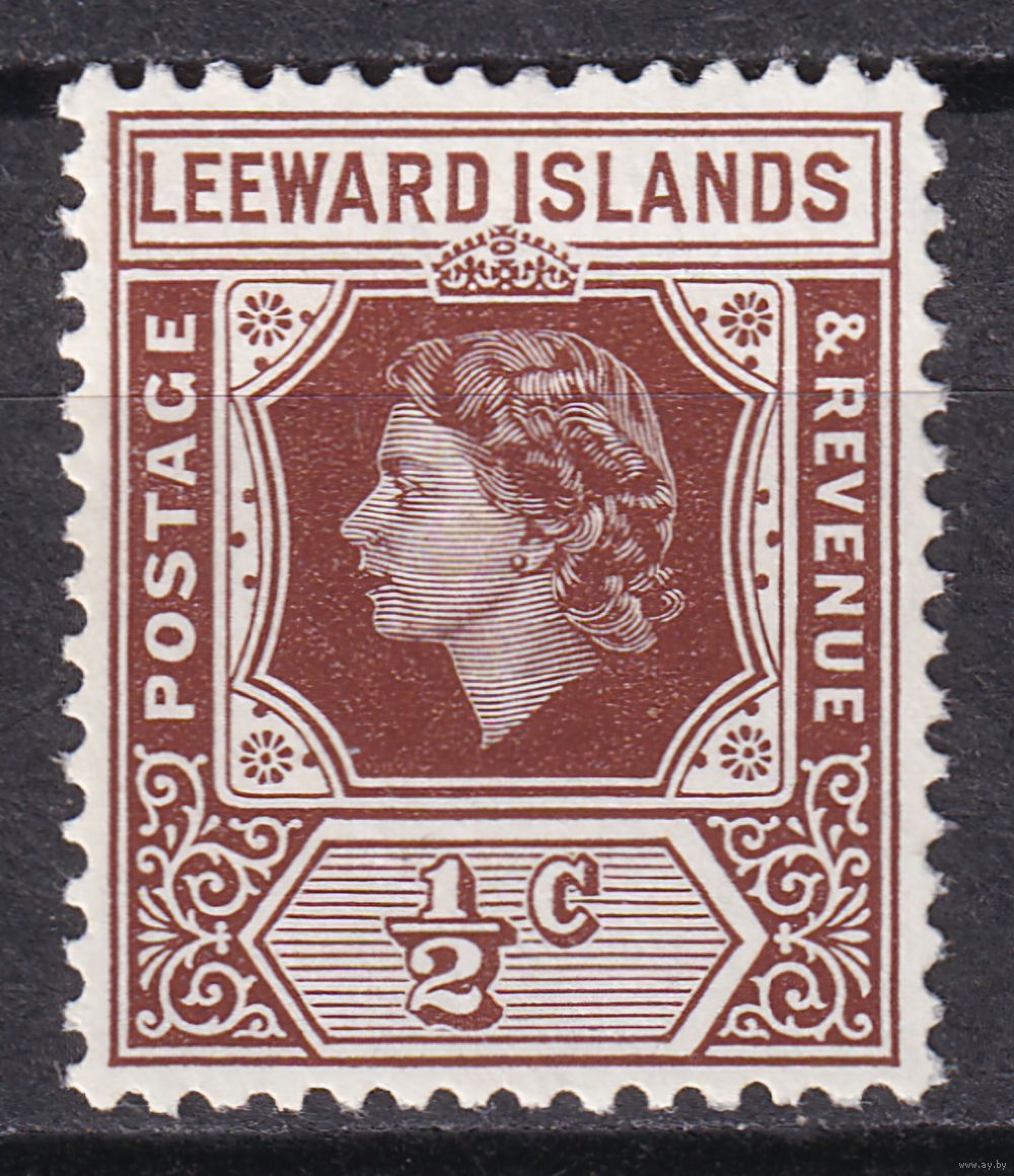 160.BrKCI. Великобритания. Колонии. Подветренные острова. Стандарт. Елизавета II. 1954 г. 1/2C. Mi.#117.