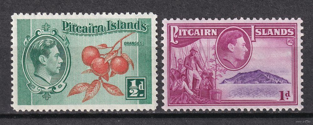 161.BrK. Великобритания. Колонии. Острова Питкэрн. Георг VI. Местные мотивы. 1940 г. 1/2P, 1P. Mi.##1-2.