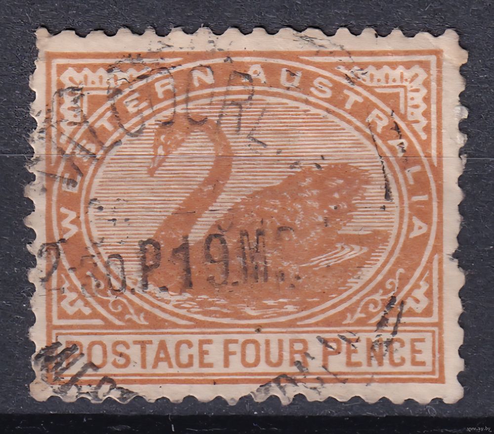 165.Aust. Великобритания. Австралийские штаты. Западная Австралия. Чёрный лебедь. Стандарт. 1906 г. 4p. Mi.#65Ab.