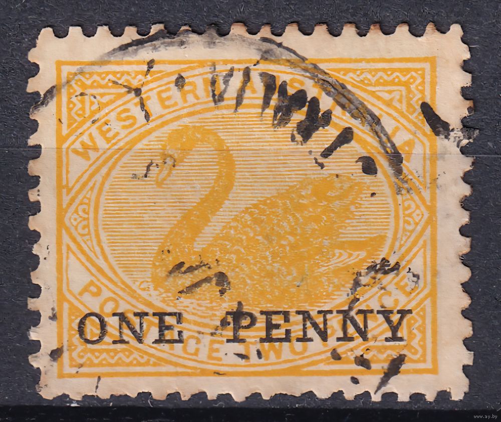 166.Aust. Великобритания. Австралийские штаты. Западная Австралия. Чёрный лебедь. Стандарт. 1912 г. Надпечатка нового номинала. 1p. Mi.#74A.
