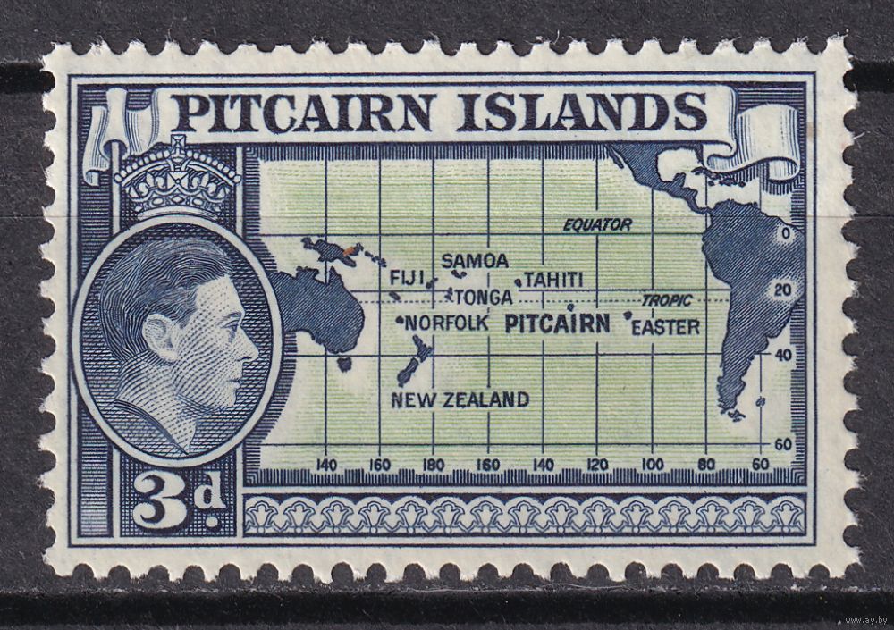 168.BrK. Великобритания. Колонии. Острова Питкэрн. Георг VI. Местные мотивы. 1940 г. 3P. Mi.#5.