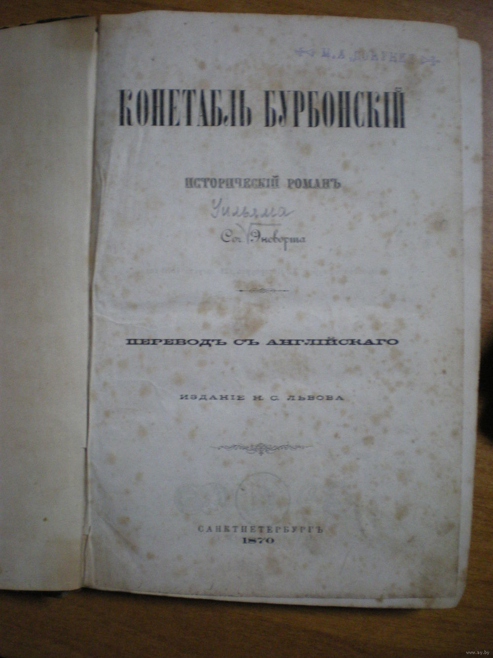 1870 УИЛЬЯМ ЭНСВОРТ КОНЕТАБЛЬ БУРБОНСКИЙ