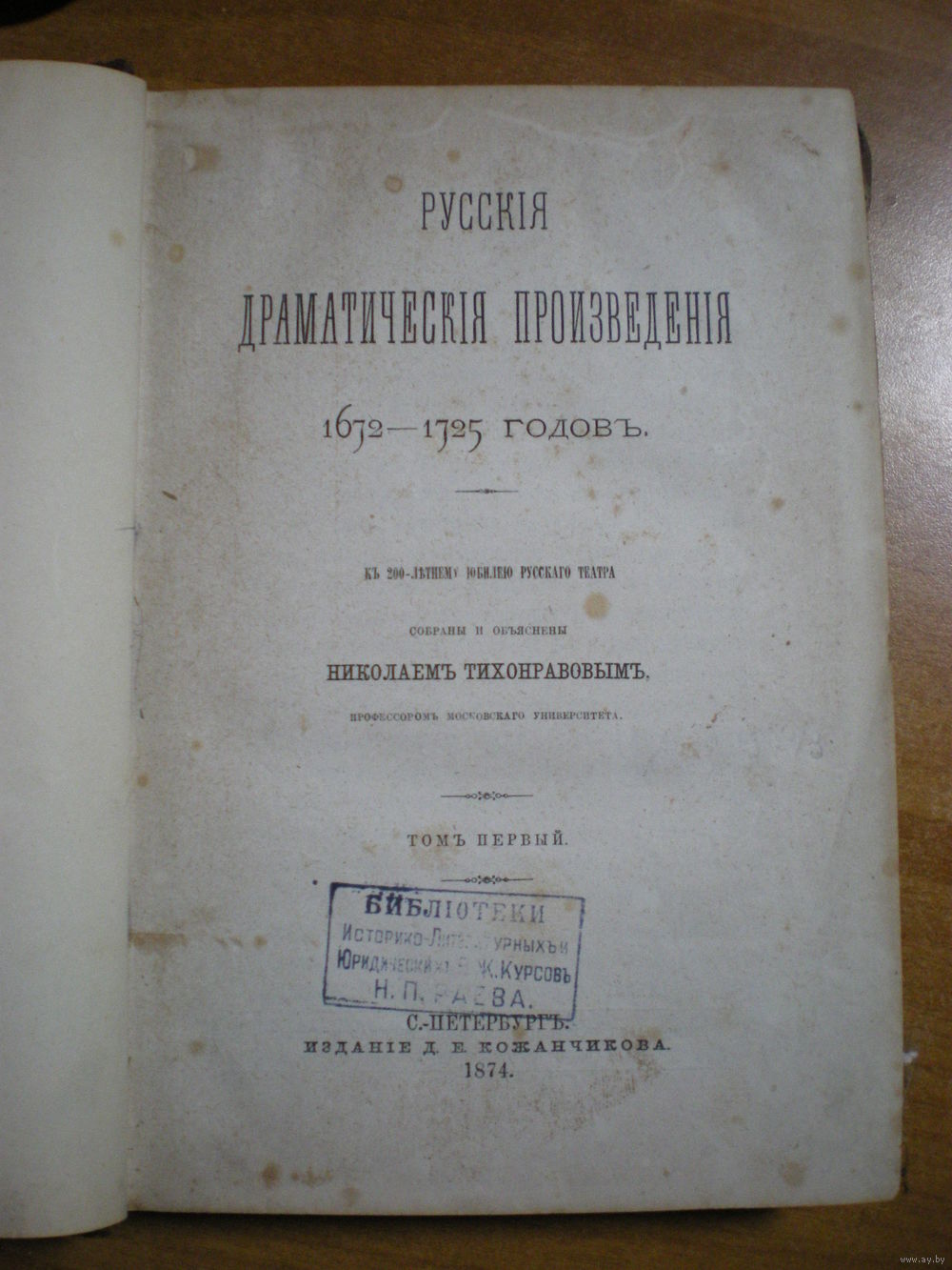 1874 Н.ТИХОНРАВОВ РУССКИЕ ДРАМАТИЧЕСКИЕ ПРОИЗВЕДЕНИЯ в 2-х томах