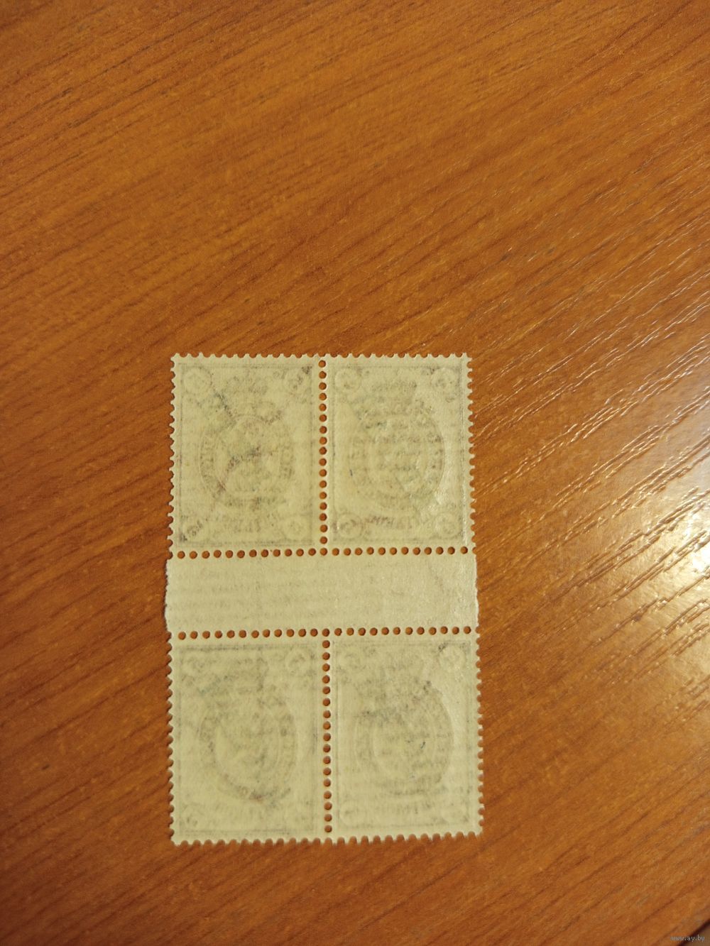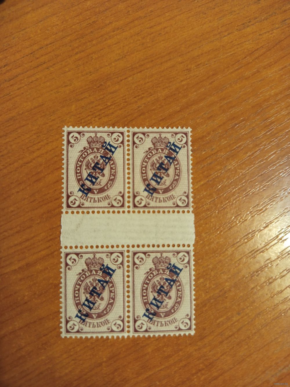 1899 Россия русская почта в Китае Мих 5 горизонтальное верже квартблок с горизонтальной дорожкой чистый клей MNH** герб (2-11)