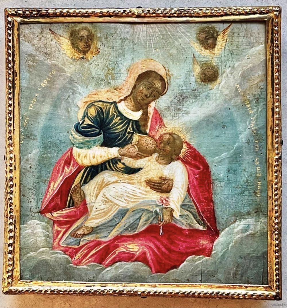 Икона Божией Матери "Млекопитательница", 18 век, Кострома. Размер 9х9 см.