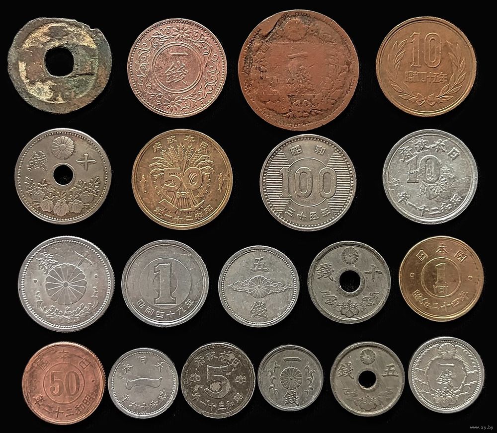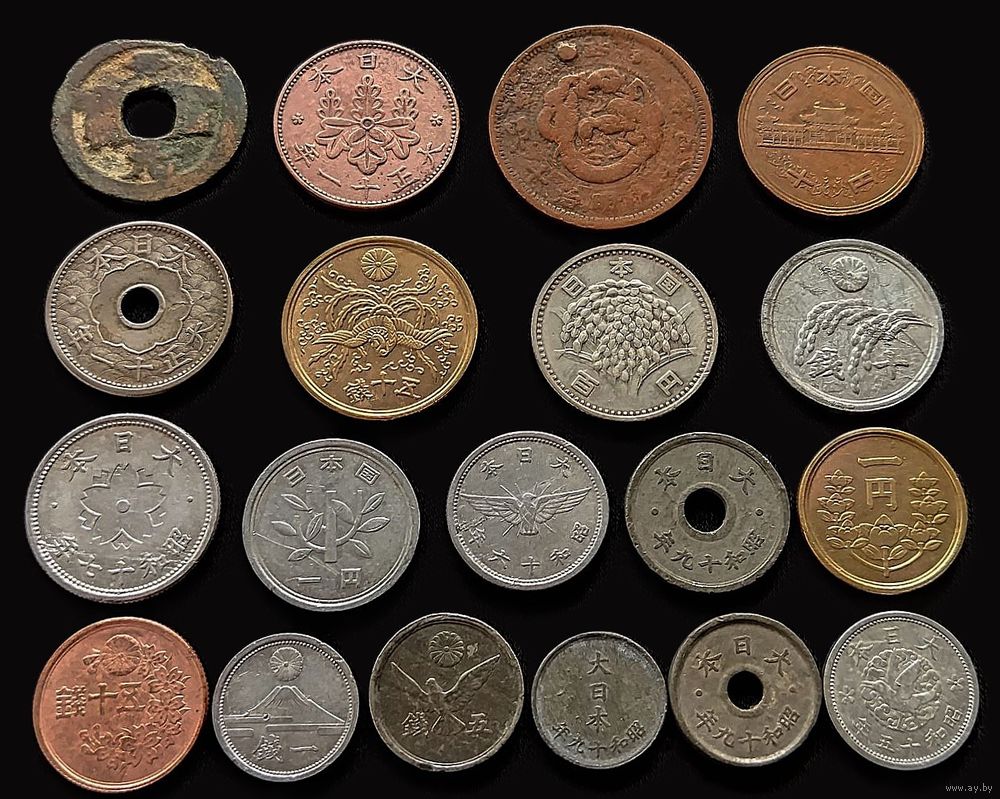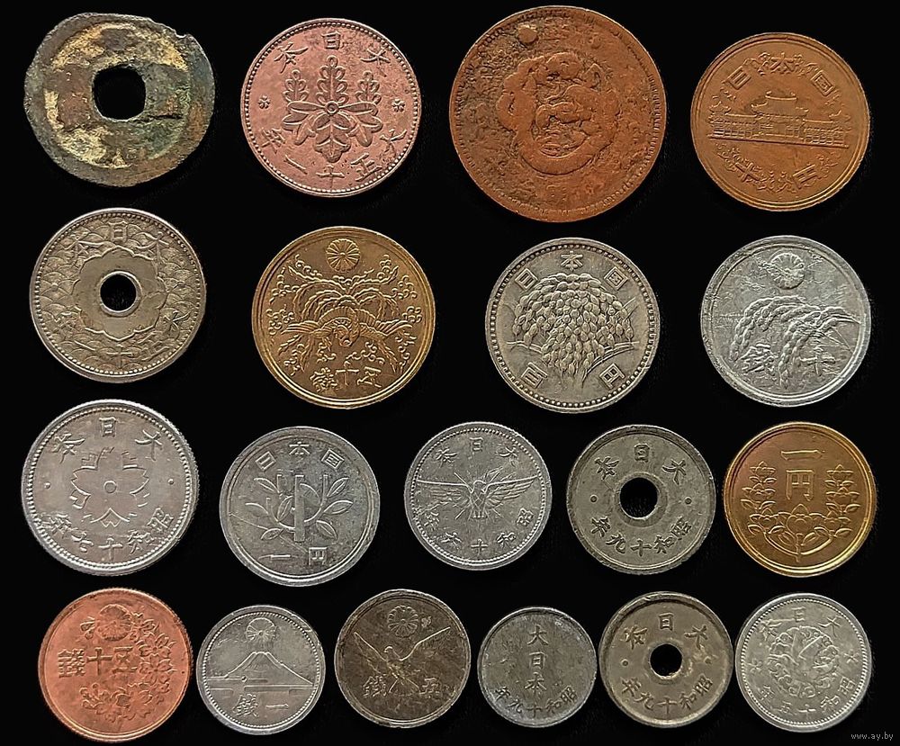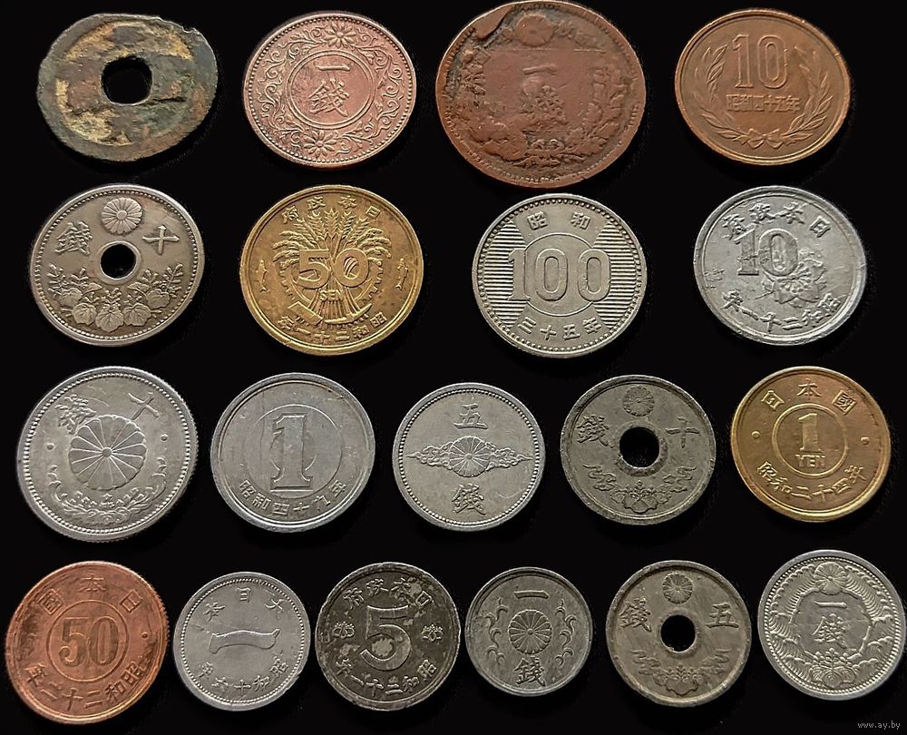 19 МОНЕТ ЯПОНИИ БЕЗ ПОВТОРОВ С СЕРЕБРОМ (100 ЙЕН 1960 г.)
