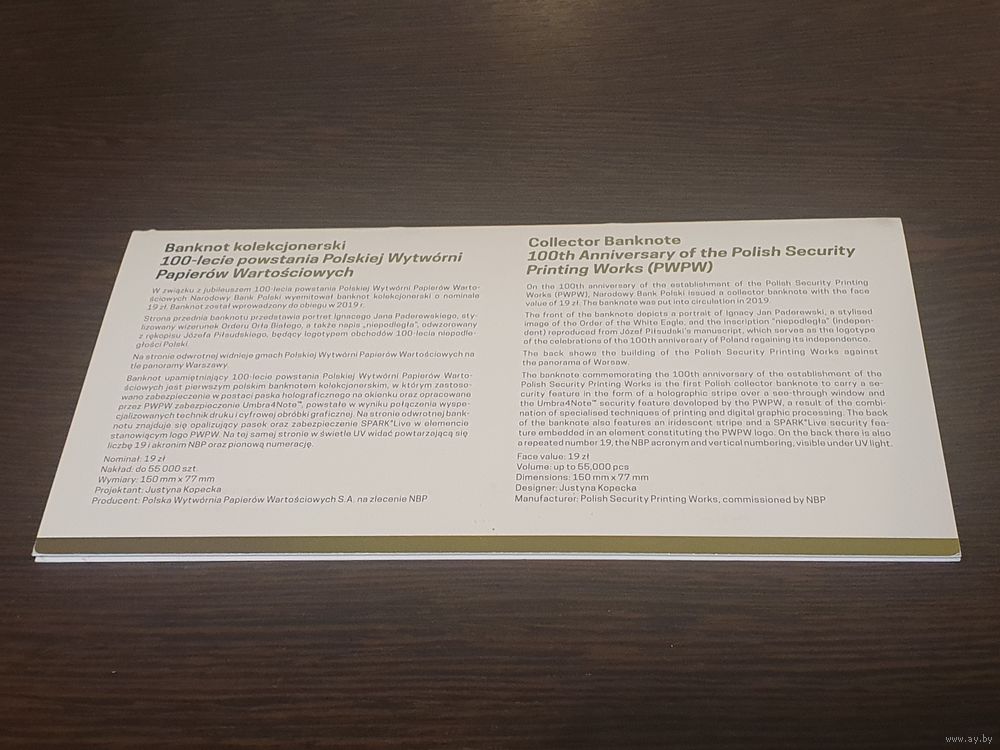 20 злотых Польша. 100-летие независимости Польши. Памятная банкнота Народного Банка Польши. 2018 год. UNC.