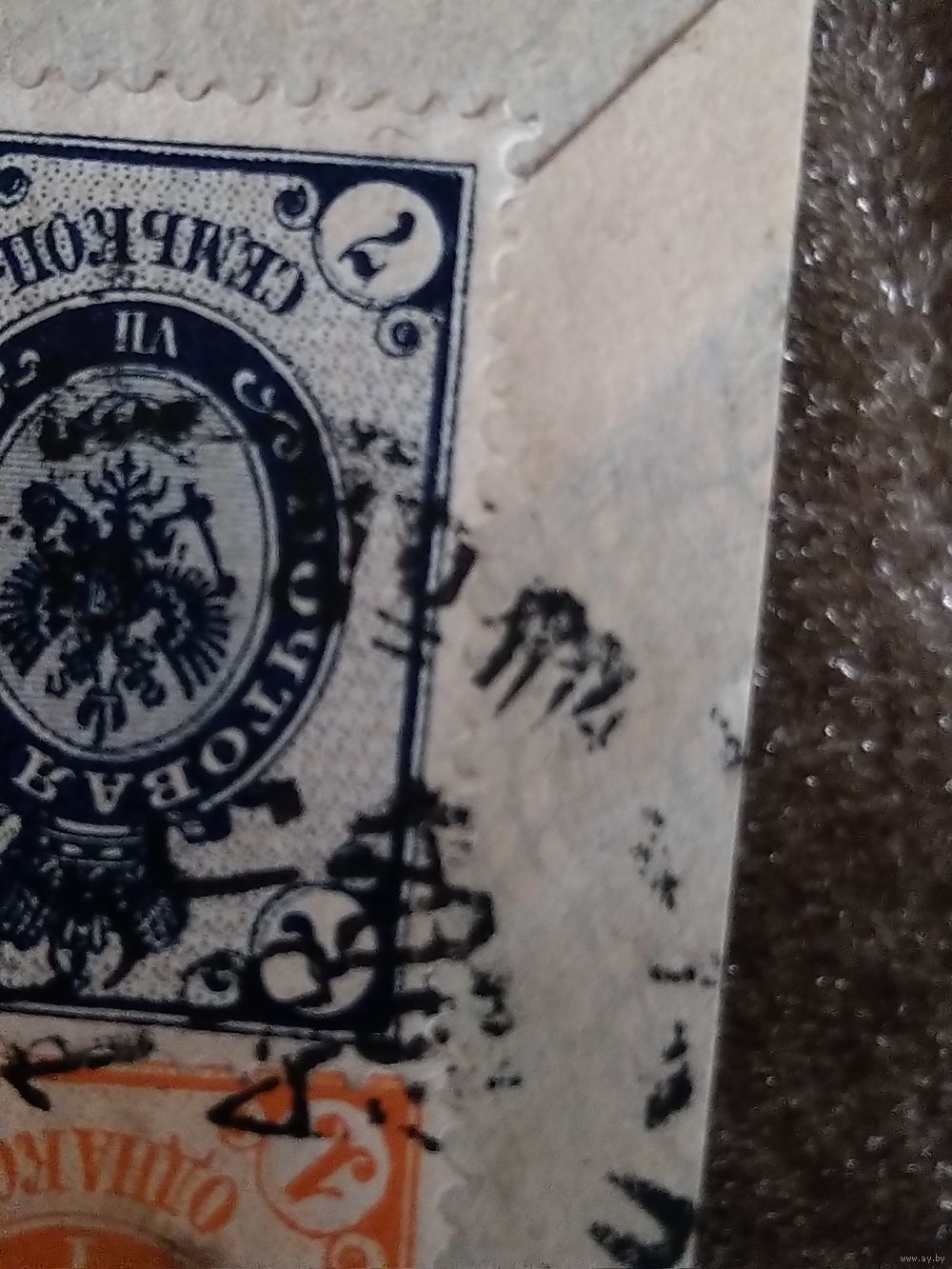 1902 Россия марки Заг 66, 70 редкое гашение почтового вагона 104 поезда Одесса - Минск железная дорога герб (1-9)